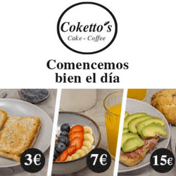 Si eres de las personas que se levantan con poca hambre o si te gusta empezar el día cargado de energía, la pastelería-cafetería Cokettos´s ofrece tres desayunos de 3 €, 7 € y 12 € que se adaptan a los gustos de cada uno.