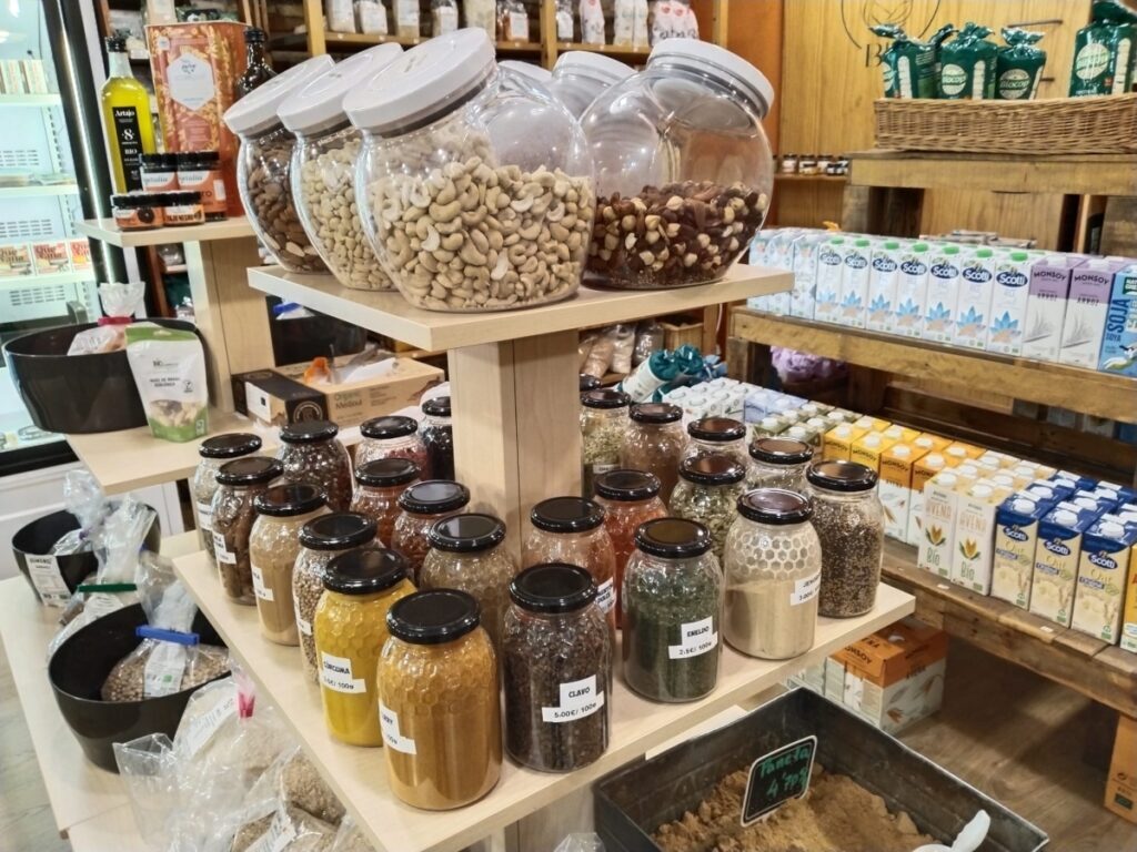 A pesar de estos desafíos, Mundo Bio conserva su esencia. Ofrece una amplia variedad de productos en seco y a granel, como legumbres, cereales y frutos secos, muchos de ellos con sello navarro. Además, cuenta con una selección de nevera que incluye hamburguesas vegetales, tofu, seitán, bebidas de té verde, kombucha y quesos veganos, entre otros.