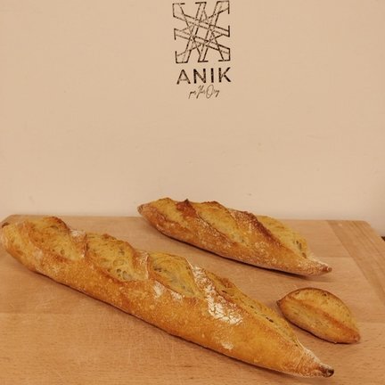 En la panadería Anik realizan diferentes tipos de pan pero todos con la misma cualidad: están hechos con masa madre cultivada en su propio obrador. “Mucha gente que no le sienta bien el pan viene, y aparte de gustarle le sienta bien, así que vuelven”, afirma Iker, que con sus panes hechos con solo harinas limpias, agua, sal y, a veces levadura, quiere quitar prejuicios de que todo el pan engorda o sienta mal.